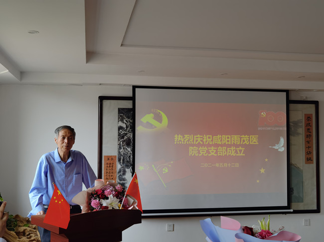 大会第二项,咸阳雨茂医院党支部成立,从政治上是我院的一件喜事,从企业发展历程上是我院的一件大事。党支部书记赵天才教授讲话:党支部要发挥战斗堡垒作用,党员要发扬先锋模范作用,培养入党积极分子,推动促进医院各项工作发展,开创新局面。