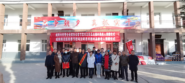 春节将至,年味渐浓。2021年2月5日(农历腊月二十四日),咸阳雨茂医院执行院长冯丽萍和咸阳市民营企业家一行人员赴泾阳县兴隆镇双槐村慰问残疾人、高龄老人。