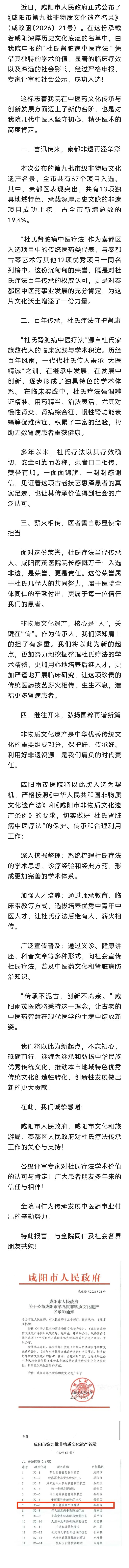 喜报 |热烈祝贺我院“杜氏肾脏病中医疗法”入选咸阳市第九批非物质文化遗产名录!